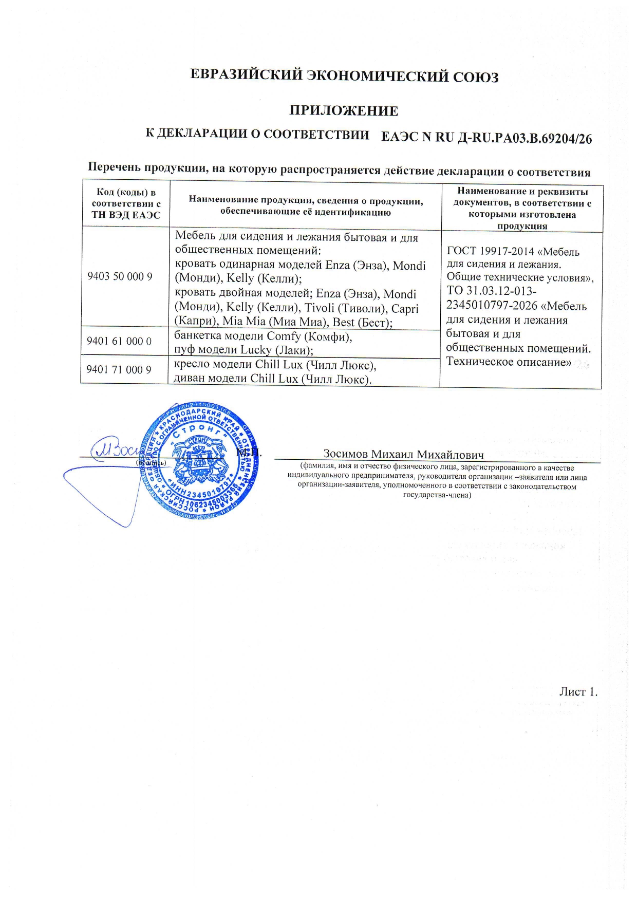 Сборка кроватей и другой мебели осуществляется в момент доставки.
